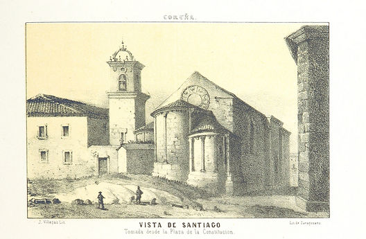 This Romanesque sanctuary from 1217 is located in the old town of A Coruña. Its Xacobean dedication can be seen in almost all the motives present in its decoration, like the three semi-columns carved with motives of the Way of St. James, the tympanum with the figure of the Apostle on horseback or his appearance in the doorjambs next to Saint John the Evangelist. This temple, along with the Collegiate Church of Santa Maria del Campo (13th-15th centuries) and with Santo Domingos (of Galician Baroque style, 18th century) are part of the town centre’s rich religious architecture